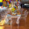 Beautiful mini transparent ghost replica chairs for a glamorous girls birthday party!