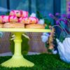 Yellow lemon fizz round footed cake stand.